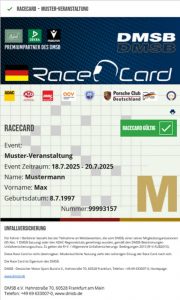 Laut DMSB-Lizenzbestimmungen-Automobilsport Art. 16 gilt für die RaceCard: